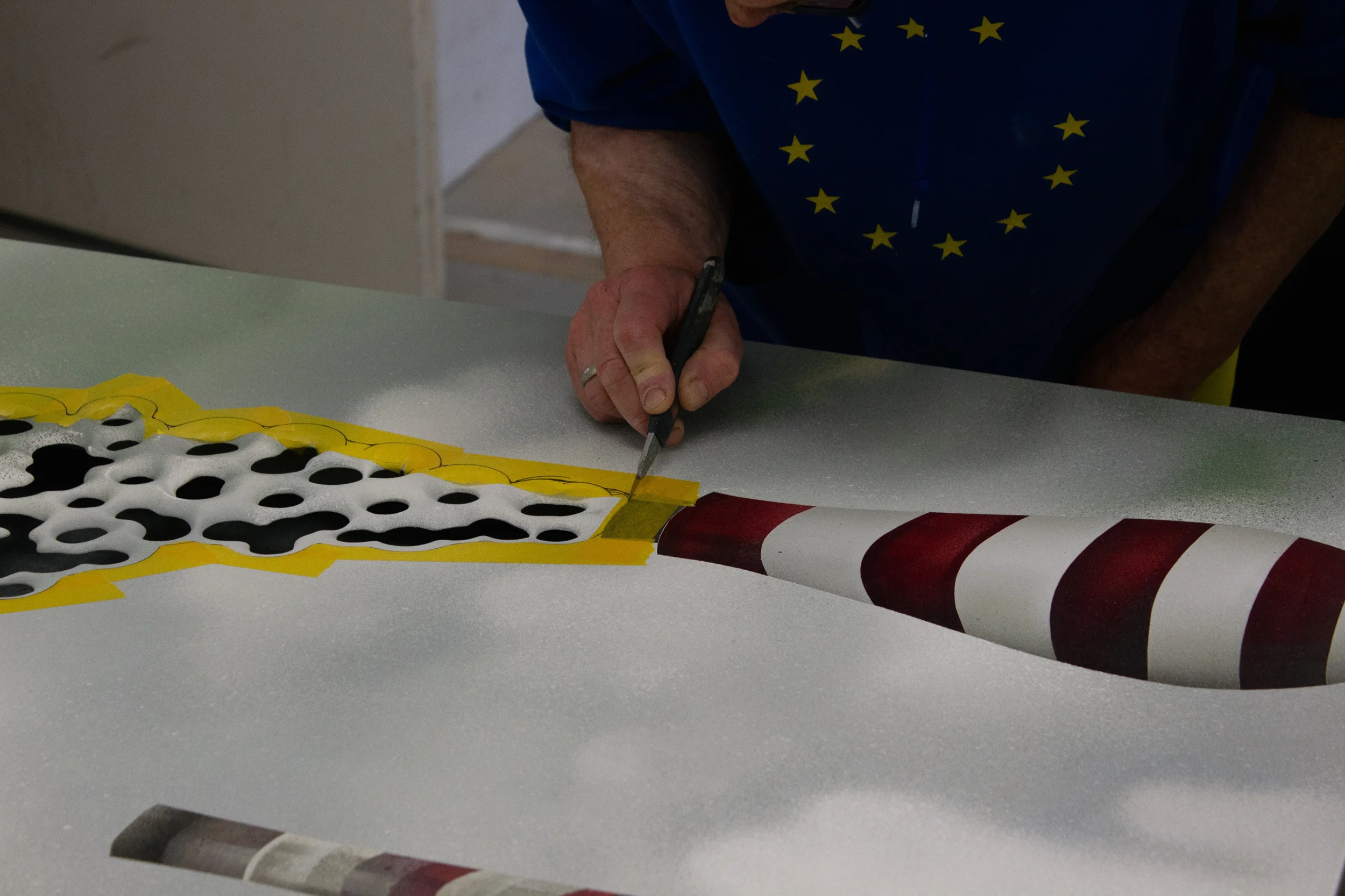 Ben Mathis zählt zu den Pionieren der Düsseldorfer Graffitiszene. Bereits in den 2000ern setzte er mit der Bemalung ganzer Fassaden neue Maßstäbe. Heute prägt er das Stadtbild mit ungewöhnlichen Straßenschildern und künstlerischen Projekten, die den öffentlichen Raum auf kreative Weise neu denken.